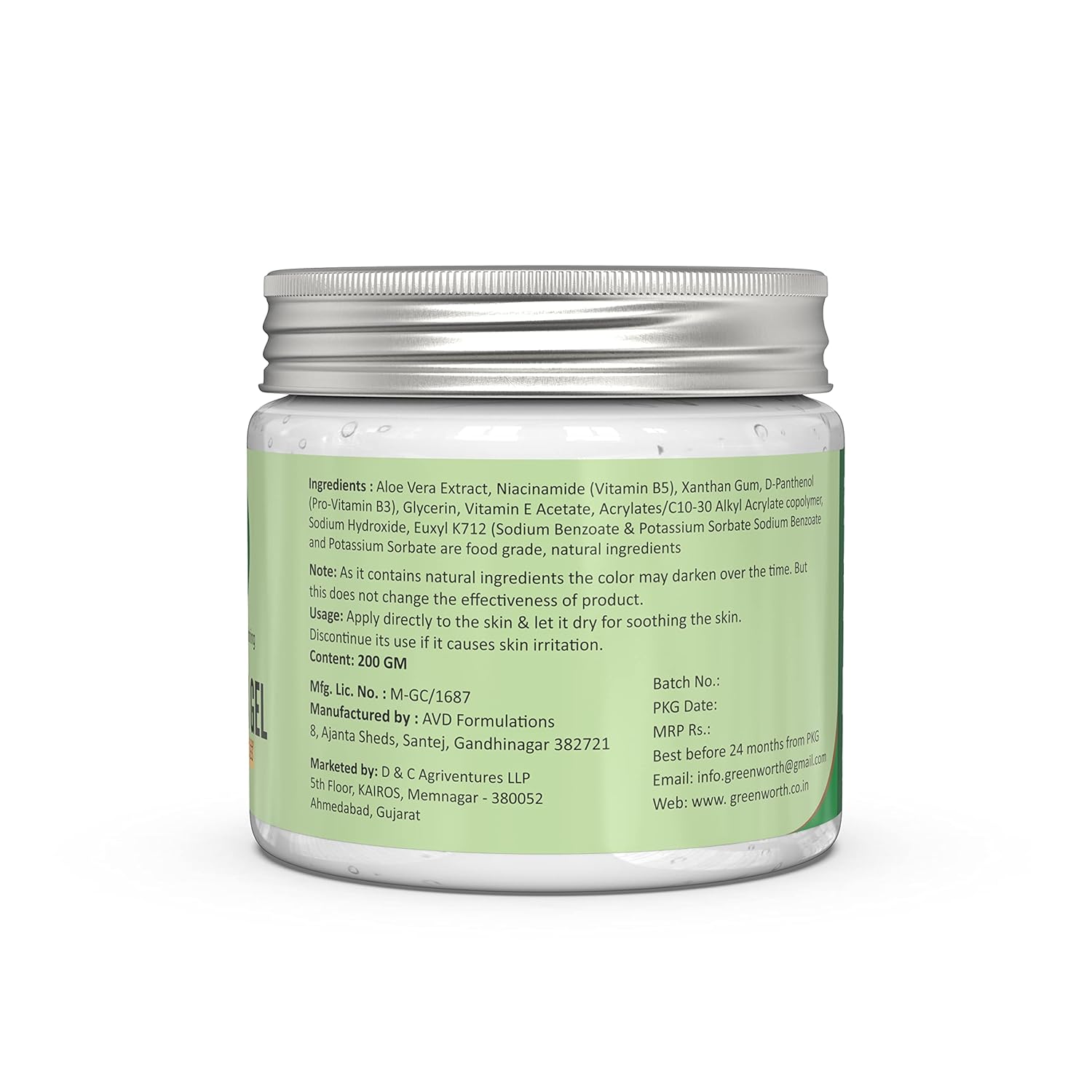 Greenworth Aloevera Gel for face, skin and hair made from Pure, Natural, Transparent extract of aloe inner gel extracted from mature leaves.